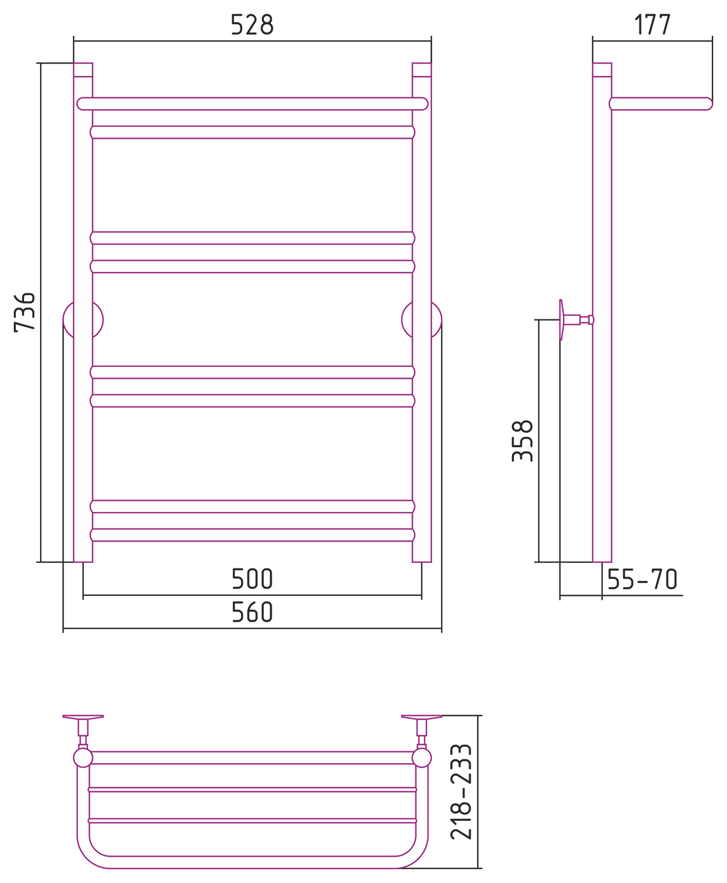 Полотенцесушитель водяной Стилье Универсал-56 800x500